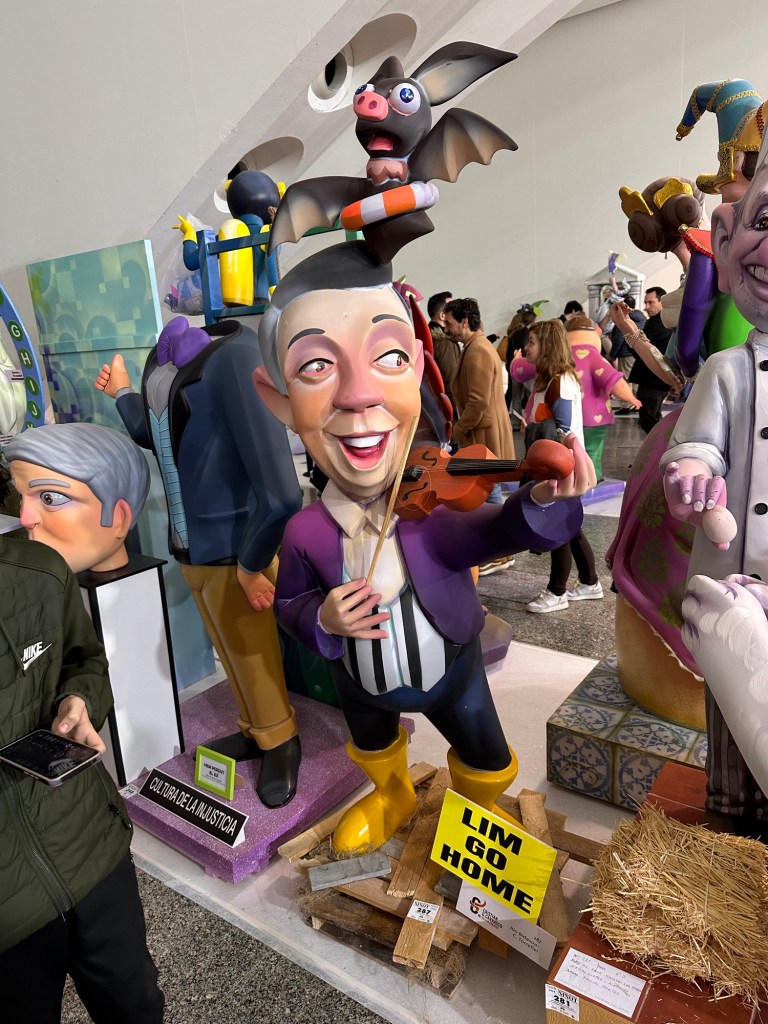 Before I show you a few of the Ninots (there were hundreds!), here is a moment while we were waiting in line to get in. Rafa said to me, “Spaniards are loud!” He’s right. Americans seem like introverts compared to these folks.