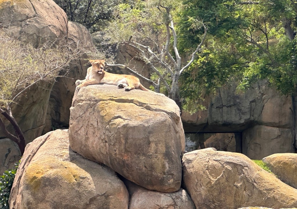 It was a beautiful day, sunny, highs in the mid 80s. I really love this zoo. It’s designed so thoughtfully and carefully to care for the animals and make them feel as much as possible as if they’re in their natural habitat.