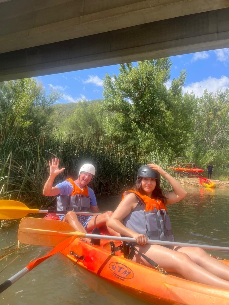 On Saturday, I went kayaking with a group from my Spanish school. We took a bus to the mountains. Cofrentes is about 90 minutes west of Valencia. We drove past Requena and Utiel, two towns that Sue and I visited two years ago for their vineyards and wineries. We spent almost two hours on the Rio Gabriel.