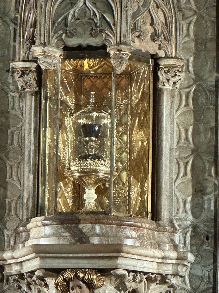 We toured the Cathedral. Like many European cathedrals, the Valencia Cathedral displays amazing art from the Middle Ages, through and past the Renaissance. Like many cathedrals, there are relics that inspired donations and helped build it. Don’t tell Indiana Jones. But the tour of the cathedral concludes with the “holiest” relic in all of Christendom…
