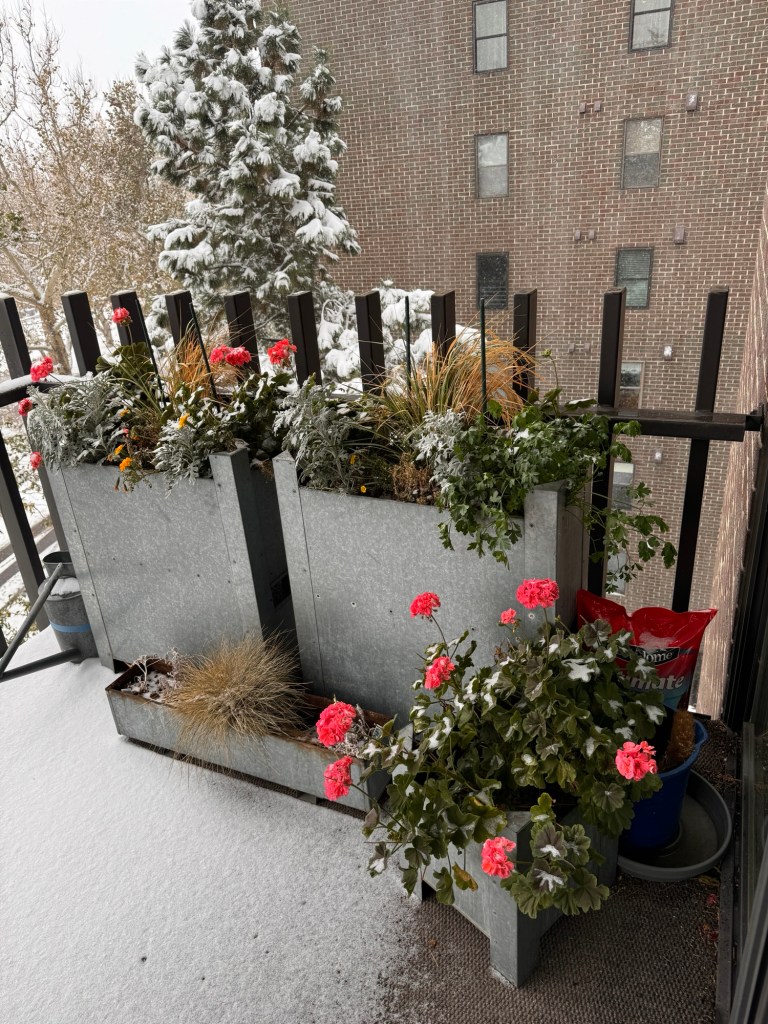 My lunch with Marilyn provided a beautiful image of hope at a time my heart was feeling despair. In the snow on her deck, the geraniums still bloomed!