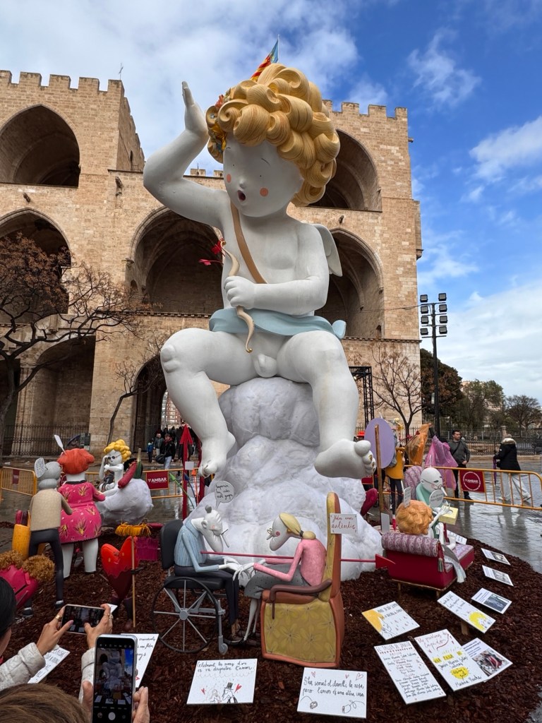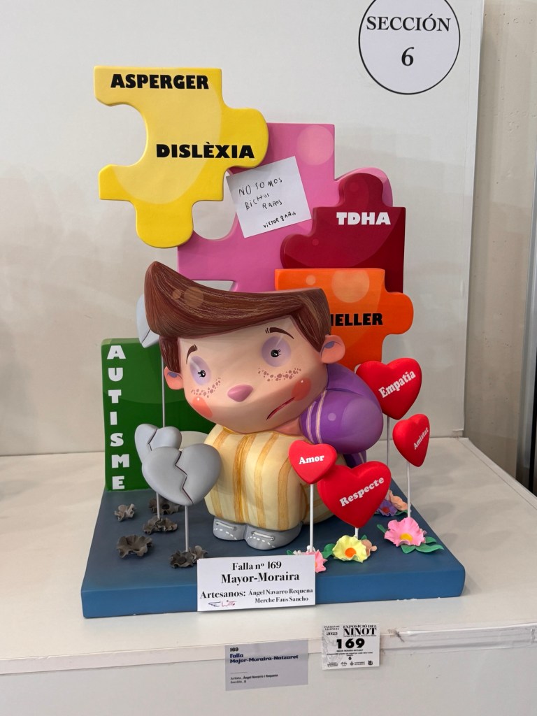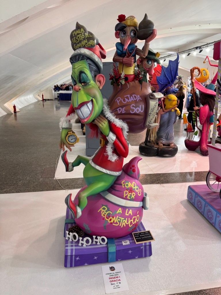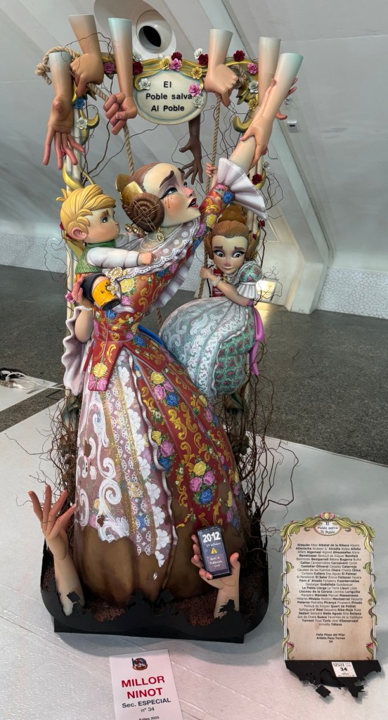 This is a display of small and of larger artistic creations that are created by each neighborhood club, also called a Fallas. Each one is part of a larger installation that are eventually mounted in the street. There are about 350 Fallas’s. So it’s a lot of art. At the end of the exposition you can vote for your favorite. The winners of the children’s and adult categories are saved. All of the rest will be burned in the street on the night of the 19th.