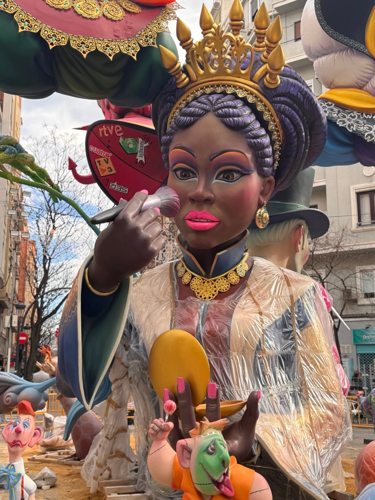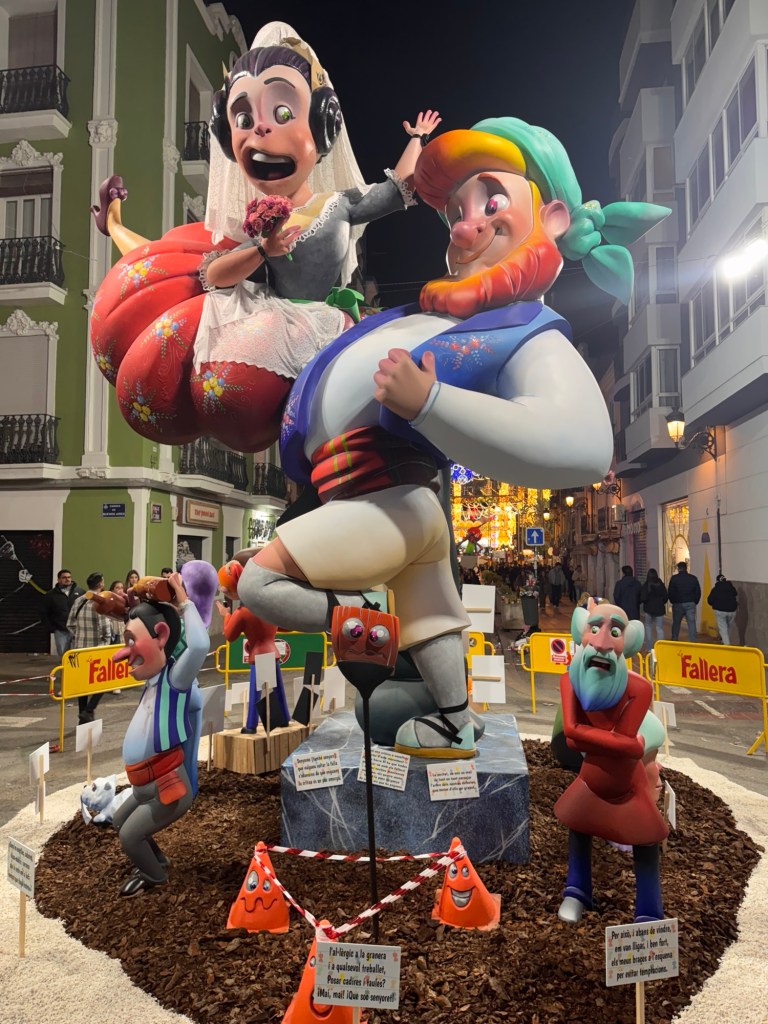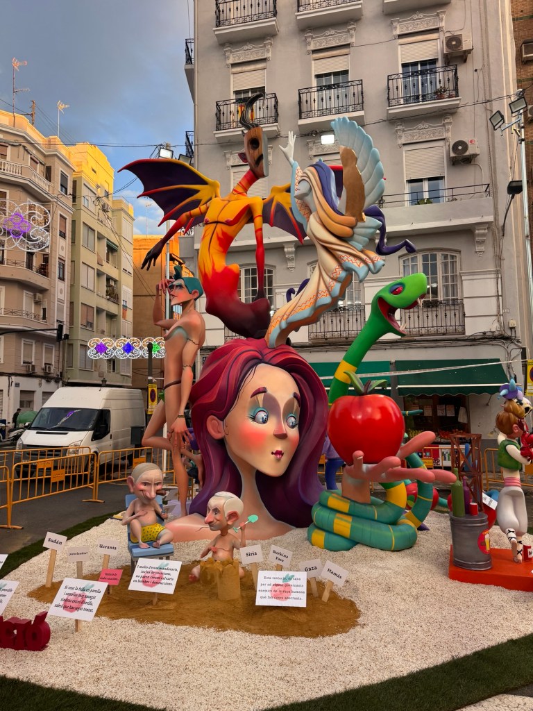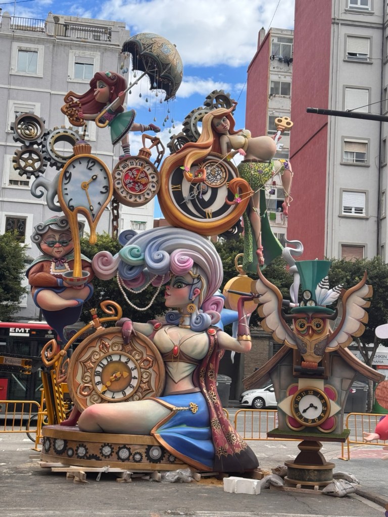 After a chicken salad sandwich for lunch, we ventured out to see some of the neighborhood Fallas’s. Most were still being assembled. But you could get a good idea of them.