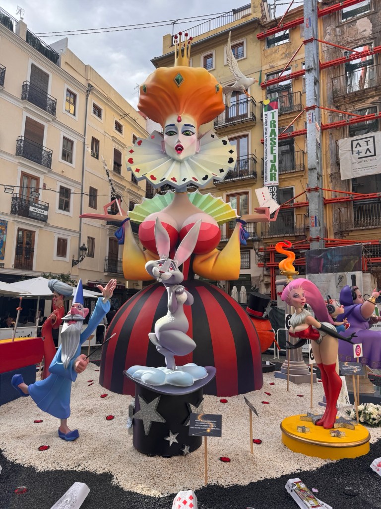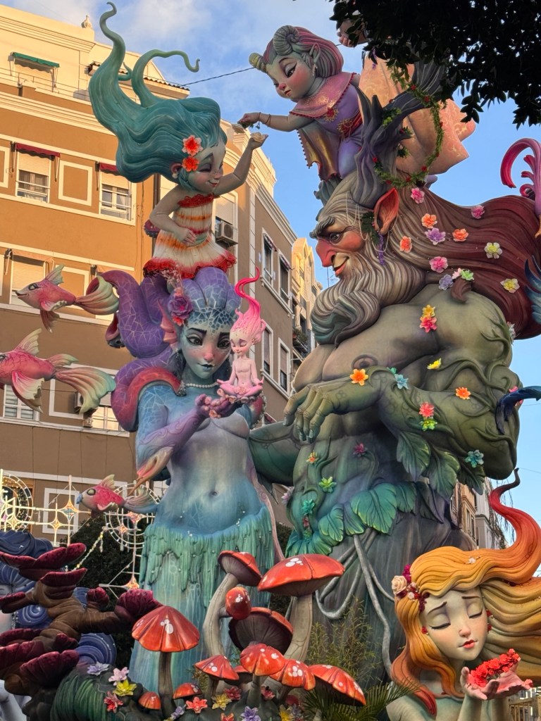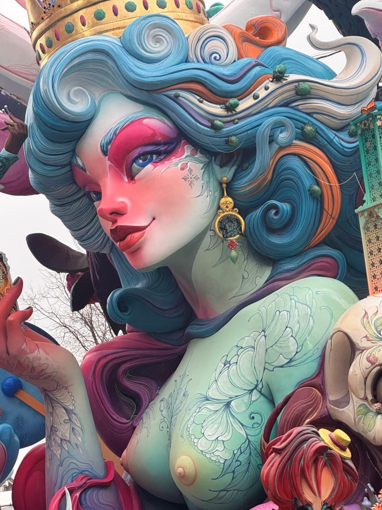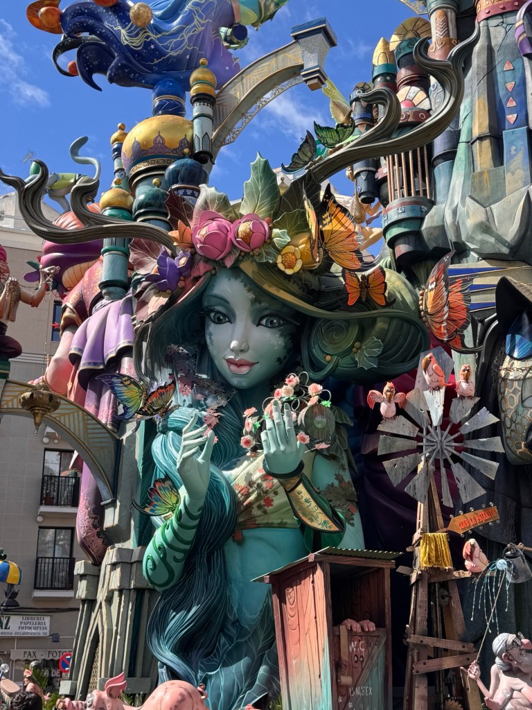 After a chicken salad sandwich for lunch, we ventured out to see some of the neighborhood Fallas’s. Most were still being assembled. But you could get a good idea of them.