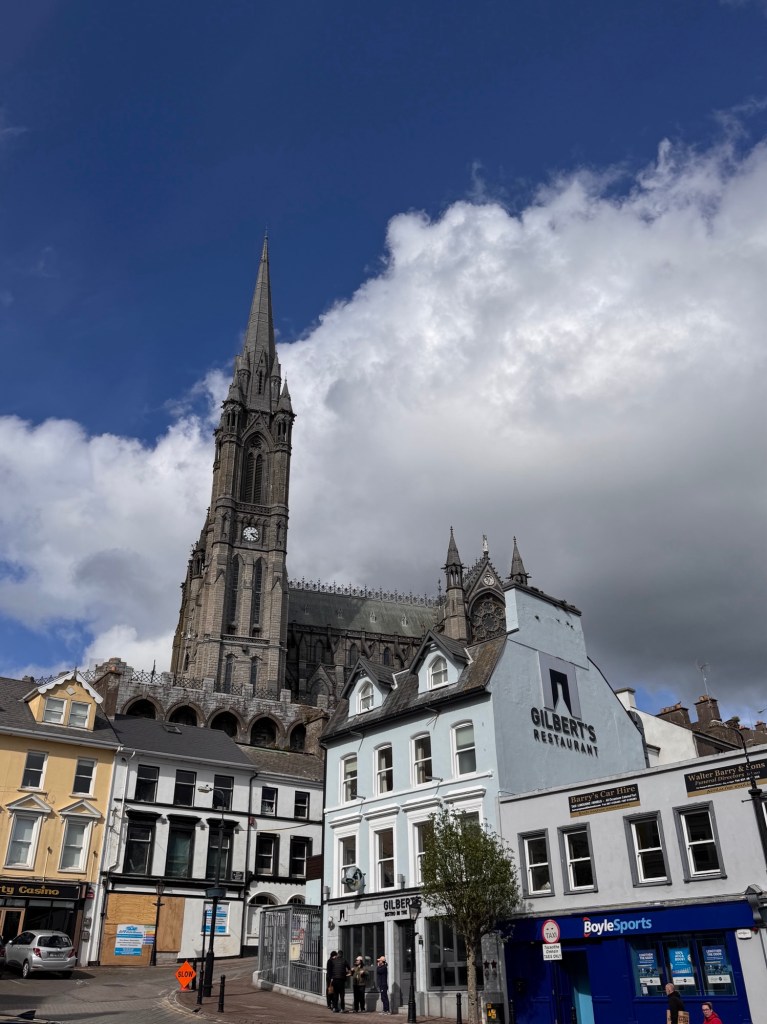 Cobh features a beautiful cathedral on the top of the hill.