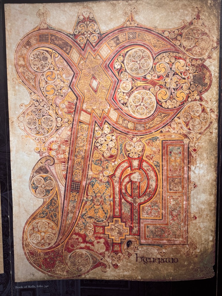 The Book of Kells is a volume of the four Gospels that was hand copied by monks (most likely) on the Isle of Iona around 800 AD.