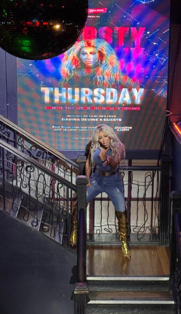 That night, we went to another drag show. It was truly one of the best I’ve seen.  Every Thursday night at George’s Pub, they present a very professional show, hosted by Davina Devine.