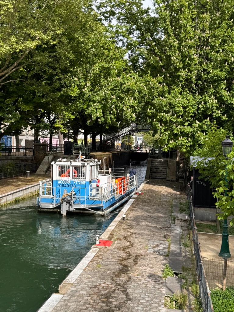 I mentioned that I was staying next to the Canal St Martin. It was a delight to cross the bridge whenever I left the apartment or arrived back. And especially fun to watch the locks lifting the boats as they came up the waterway.