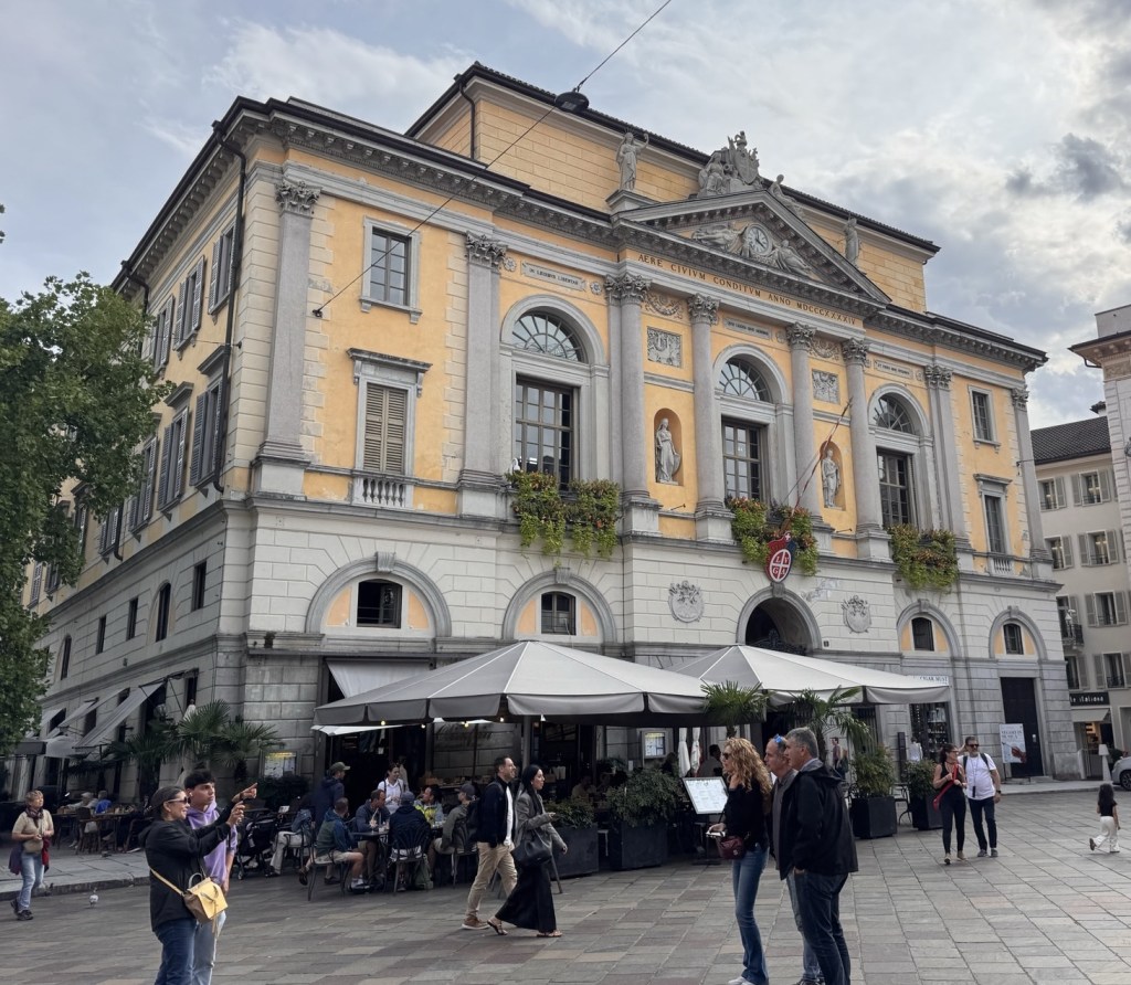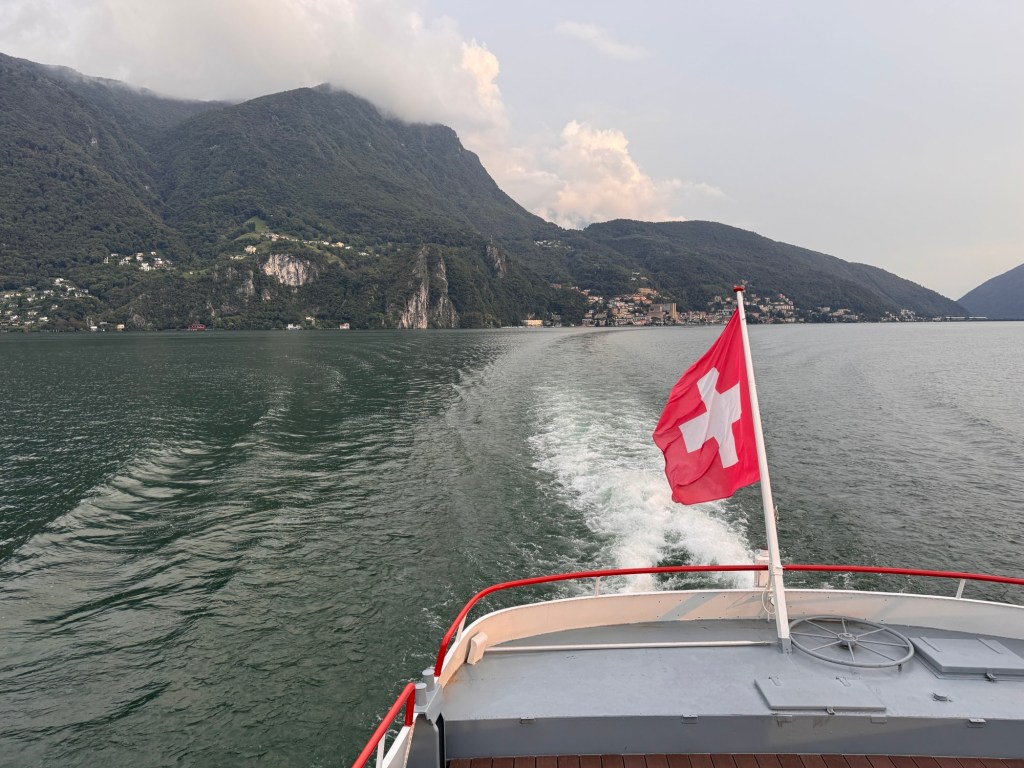 Almost back to Lugano, we stopped at Campione Italia, a one-square km town that is owned by Italy, across the lake from Lugano. There is a giant casino there that was built by Mussolini. We enjoyed an afternoon refreshment before taking the water bus back across the lake and home to Lugano.