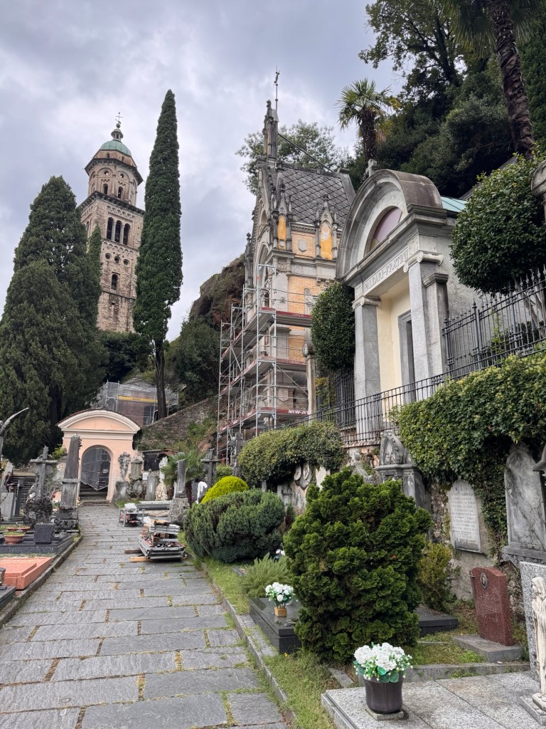 We got off in the small town of Morcote. We hiked up the hill to the church. The highlight there was the cemetery. We saw a fascinating mix of old and new grave markers.