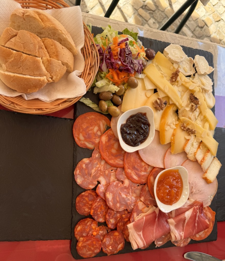 For dinner, John found a charming Italian restaurant called, Nonna’s. I had spaghetti with shrimp and a tomato and onion salad that was wonderful. For dessert, we had Nonna’s secret recipe of an almond tart. It was served with a delicious sherry. A perfect way to end the day.