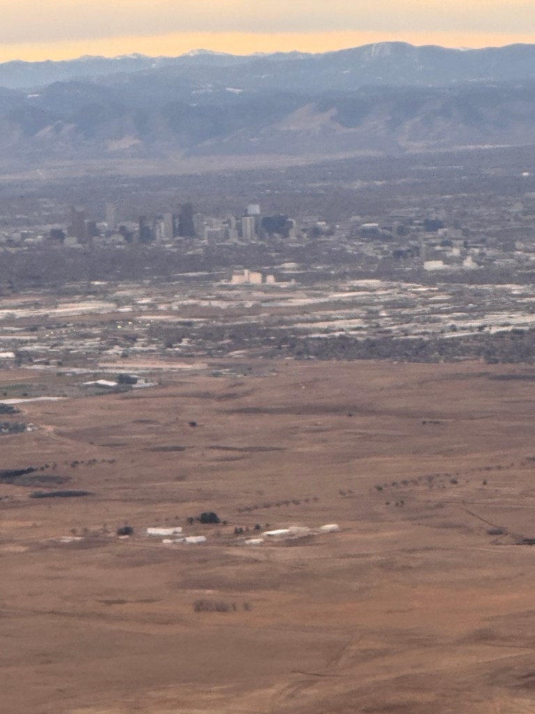Flying out of Denver was beautiful. And with the adjacent Rocky Mountains, flying into and out of Denver is always a bit bumpy. But this was by far the bumpiest, roughest flight I can remember. I was sitting near the back and the flight attendant told us back there, that we got the best seats for a wild ride. And it was.