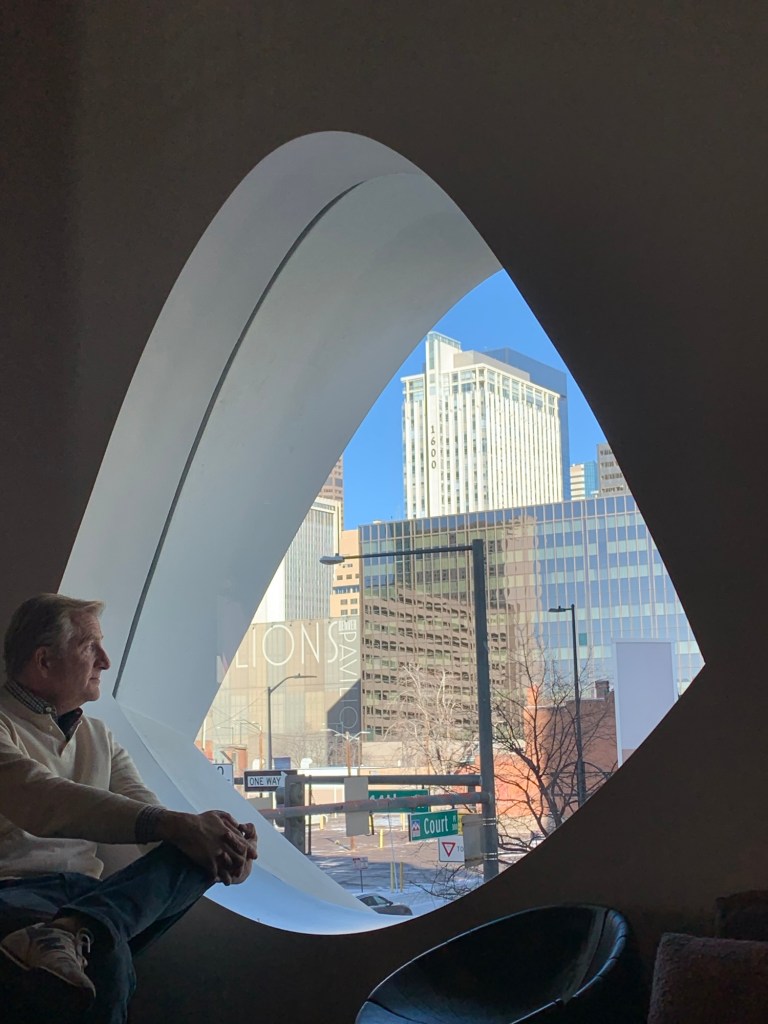 We walked along the 16th Street Mall, we stopped for a coffee at the Hilton, we explored the architecture and art of the Denver Library. We went to the Art Museum and saw an impressive exhibit of the art of Claude Pissarro. And we went into the new Populous Hotel.