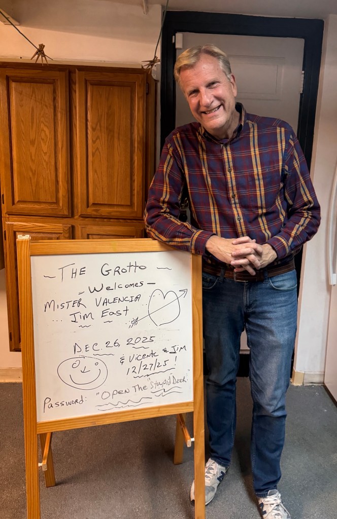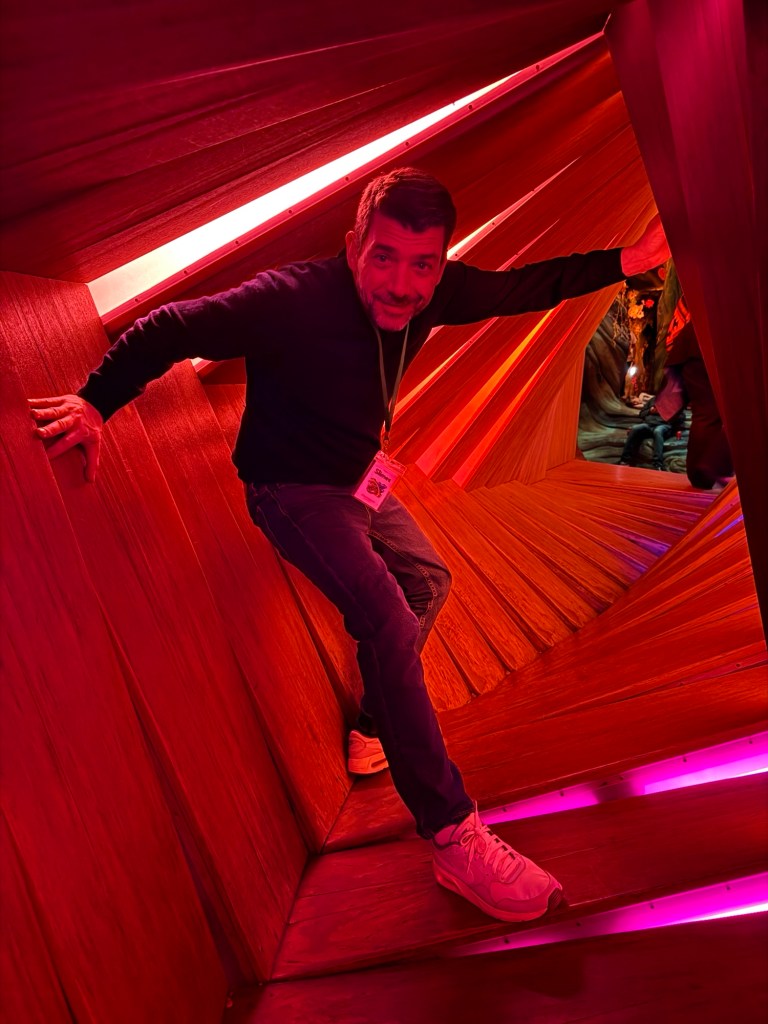 For New Year’s Day, we went to Meow Wolf. Fortunately, my friend Susan and her son Eric joined us. Eric had worked at Meow Wolf. So we enjoyed his tour of interesting explanations of the exhibits. If you’ve never seen it, it’s difficult to describe. Vicente called it an “intellectual fanfare.” It’s an artistic expression of what would happen if four worlds collided and blended together.