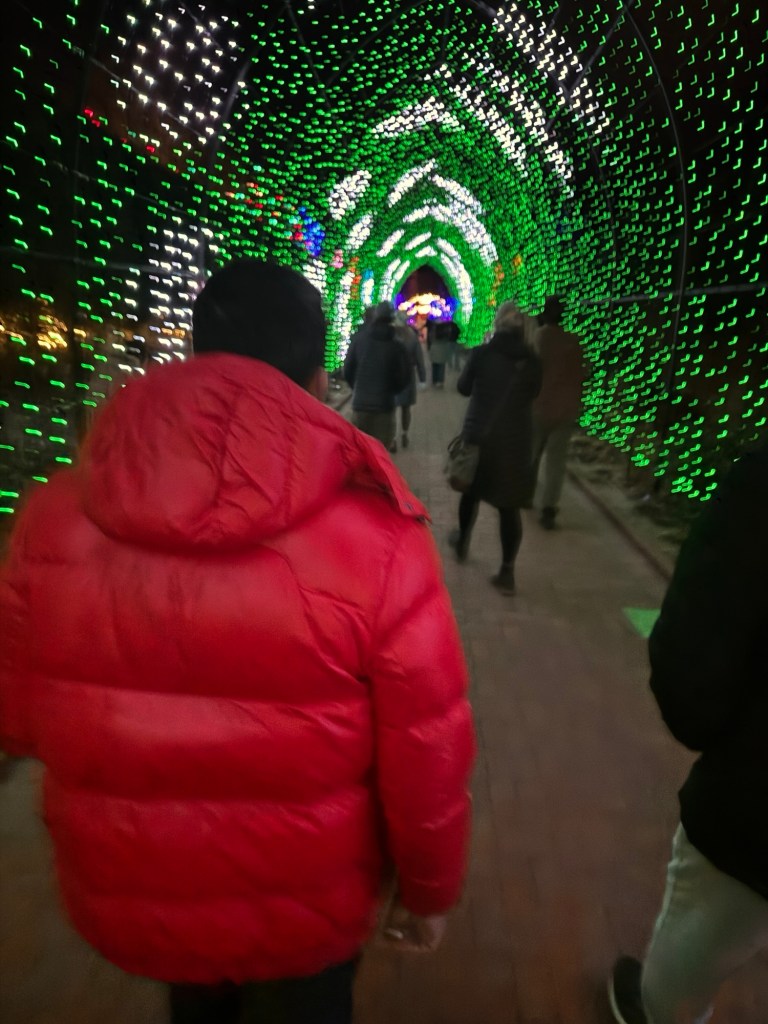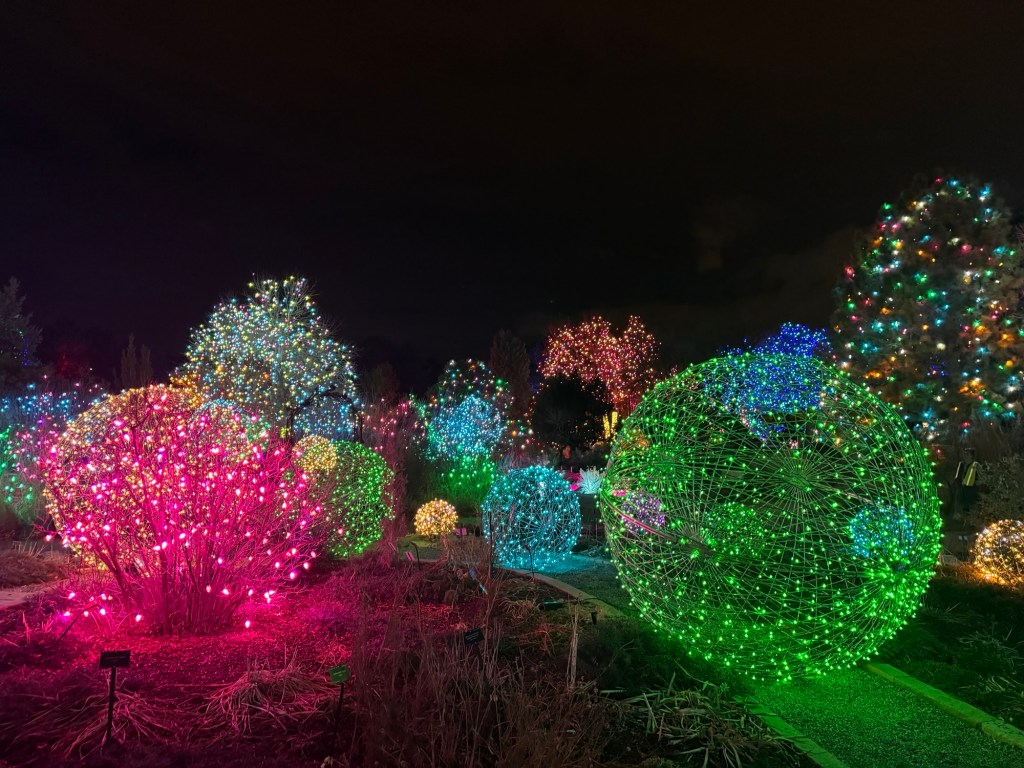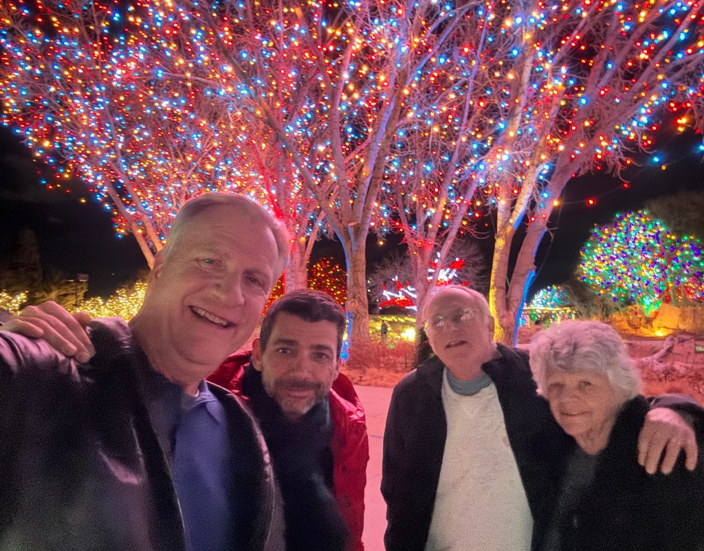 That evening, we got home in time for Ken and Pab to join us for the Blossoms of Lights at the Denver Botanic Gardens adjacent to their home.