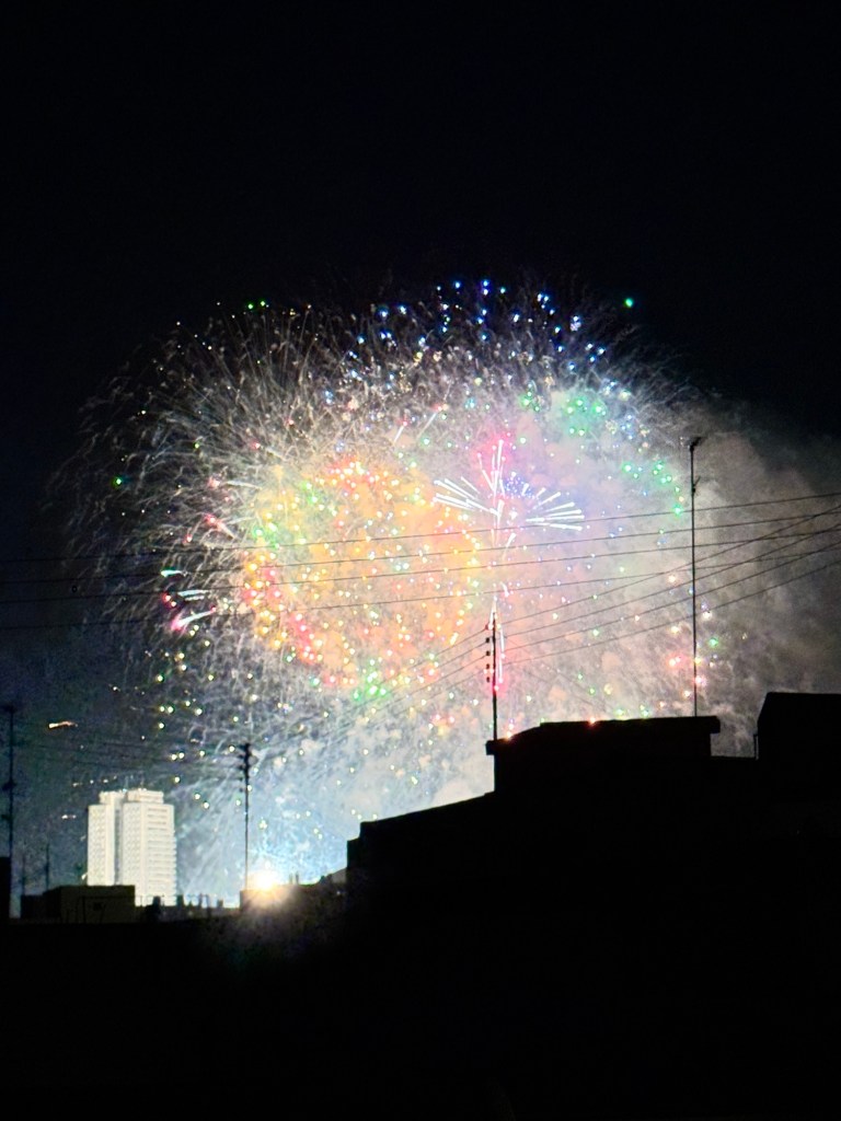 For two solid hours, all around us, people were lighting smaller fireworks.