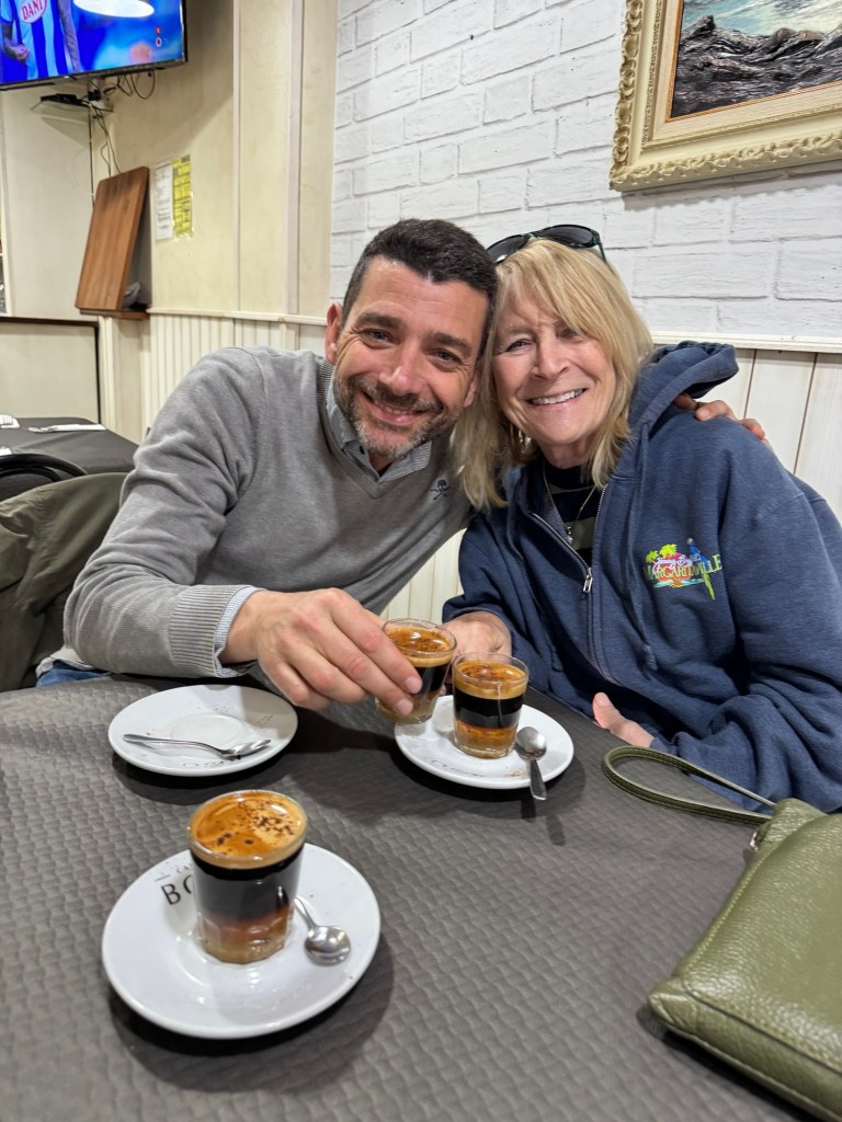After dinner, we walked to a coffee shop where Sue could try Cremaet, a local coffee, liquor and cinnamon treat.